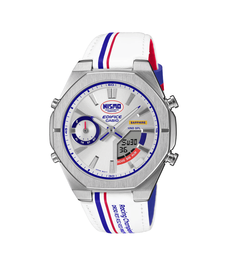 カシオ、日産自動車、NISMOが共同で企画したEDIFICE NISMOヘリテージエディションは、NISMOのレース魂をそのまま腕時計に刻み込んだ特別なモデルです。