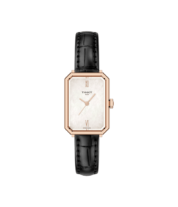 レザーストラップは時間の経過とともに手首に馴染むようになり、快適な着け心地と独特のフィット感を提供します。マザー・オブ・パールの文字盤に4つのダイヤモンドをあしらったこの長方形の時計は品格をもたらし、またあなたに自信と快適さを与えてくれる1本です。