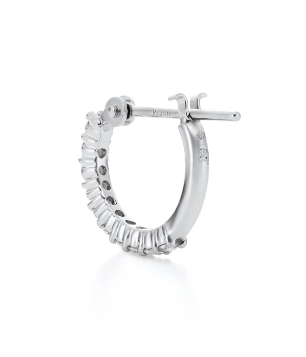ダイヤモンドが10石ずつあしらわれたフープピアス。