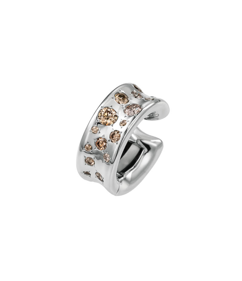 ブラウンダイヤモンドを知り尽くした職人の技が光るメランジェシリーズのイヤーカフは、極上の装着感とジュエリーらしいエレガンスを讃えています。