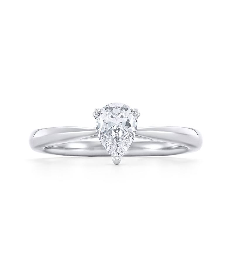 洗練されたストレートラインに、国際特許を取得しているブランドオリジナルカット「ロイヤル・アッシャー・ペアシェイプカット」のダイヤモンドをあしらったリング。