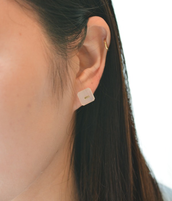 ネイキッド スクエア ストーン スタッド ピアス / ホワイトカルセドニー