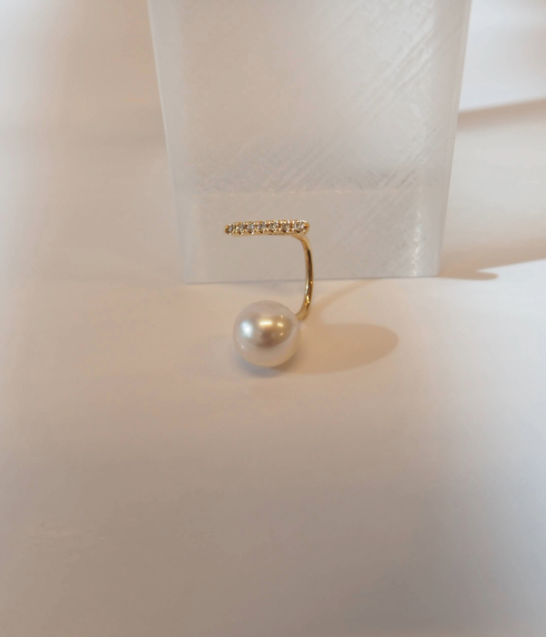 ダイヤモンドのショートバーとパールキャッチのコンビネーション。ペアで使えリュクスな大人感、片耳ならモードな印象に。左右の向きがありますのでご指定ください。