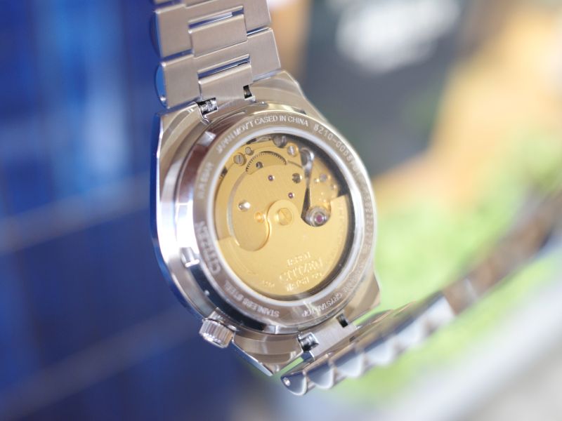 裏蓋はシースルーバックになっており、自動巻きの機械を見ることができます。