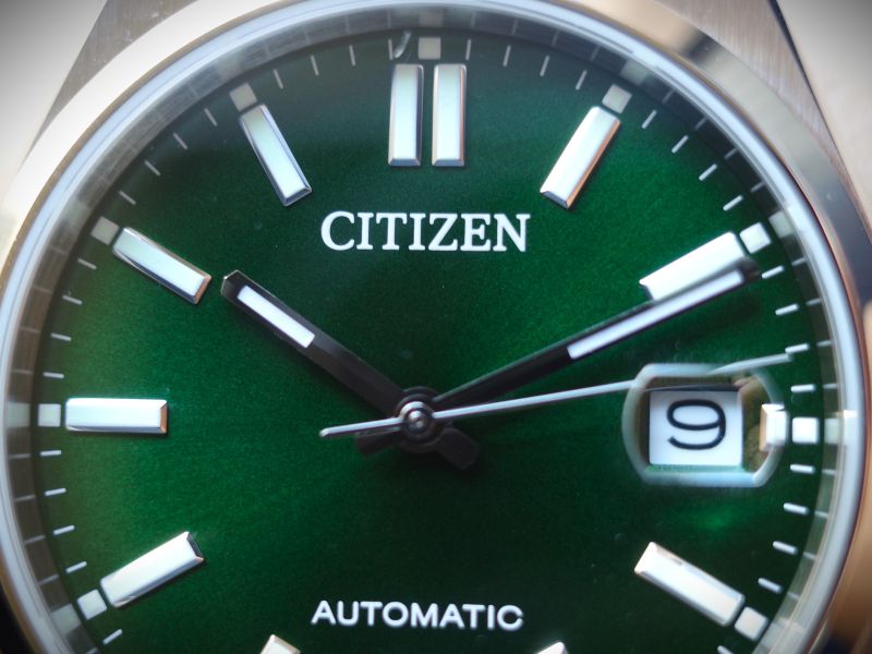 サンレイ仕上げの文字盤は大変美しく、シンプルな針とインデックスでしっかりと読み取ることができます。