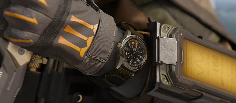 2003年に第一作目が発売された「Call of Duty」。FPS(ファースト・パーソンシューティングゲーム)をプレイしたことがあるほとんどの方がご存じのシリーズでしょう。その大人気シリーズとハミルトンのコラボという事は、なんと最新作「Call of Duty: Black Ops 7」の作中にてハミルトンの時計が登場いたします。そのモデルはハミルトン定番のカーキ フィールド。ミリタリーウォッチであるカーキ フィールドは戦場を駆け巡る、「Call of Duty」の世界観に見事にマッチしています。