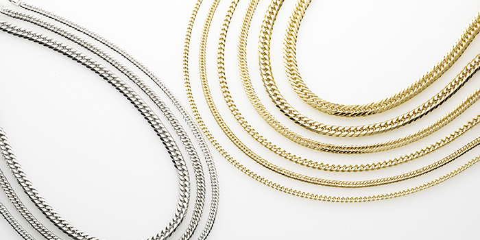 ネックレスの長さは人気の50㎝・60㎝、デザインのカット面数は2面シングル・6面ダブル・12面トリプルなどを取り揃えております。(店頭にない場合は取り寄せとなります。ご了承くださいませ。)