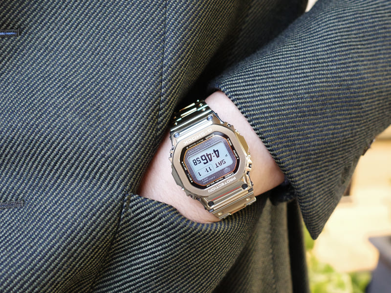 ビジネスシーンにも映える上品な輝きの中に、G-SHOCKならではの剛健な存在感を宿しています。