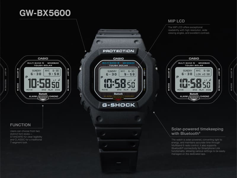 優れた視認性を誇るMIP液晶を搭載し、Bluetooth® 連携やタフソーラー、電波受信機能を備えたハイスペックモデル。