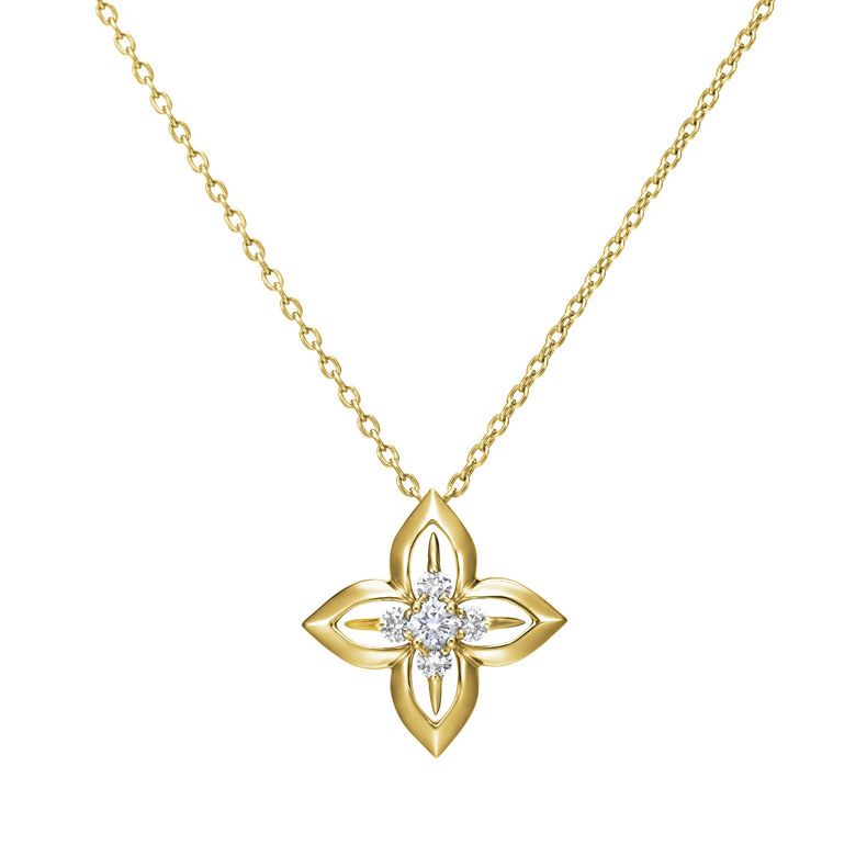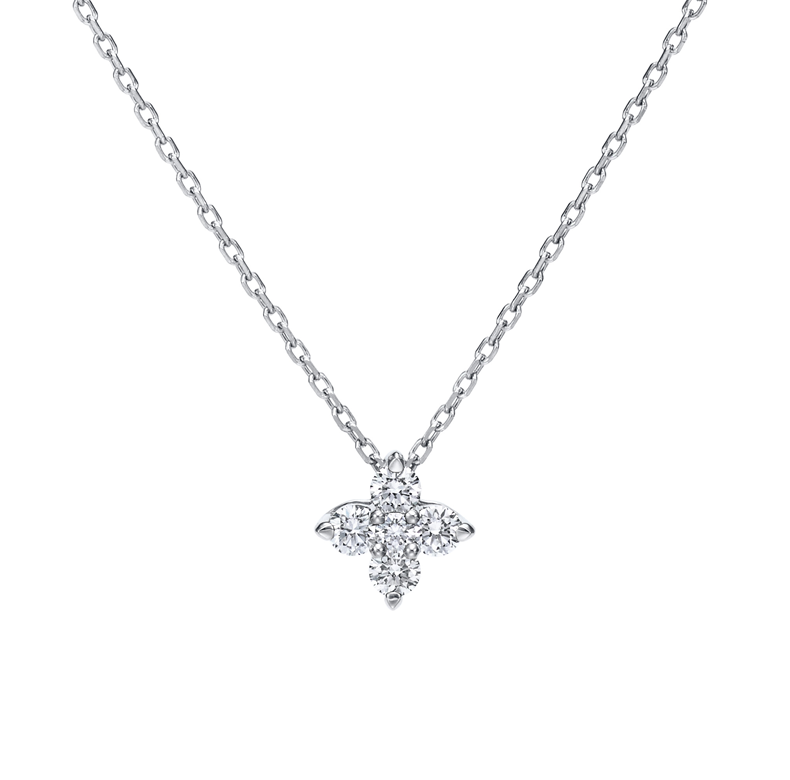 優雅で華やかな造形美を、花芯と花びらに見立てた5つのダイヤモンドでドラマチックに表現。