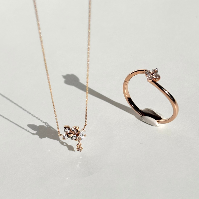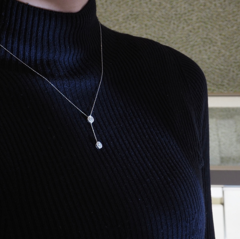ペンダントはクォーツとダイヤモンドで出来ており、うるうるとした風合い、きらっとした輝き、両方楽しめます。