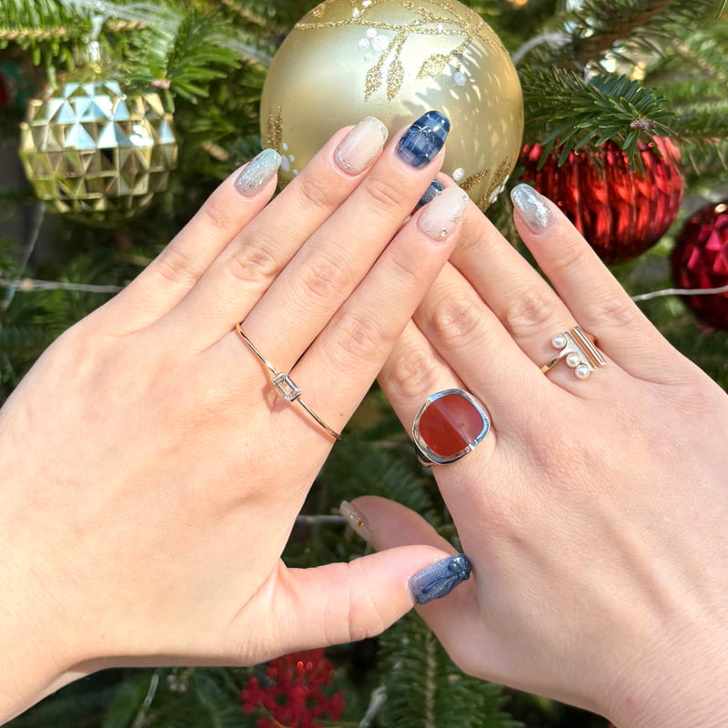ダブルフィンガーリングは存在感があるので、様々な組み合わせを自由に楽しんで。