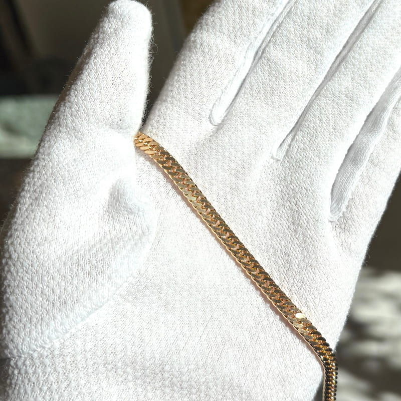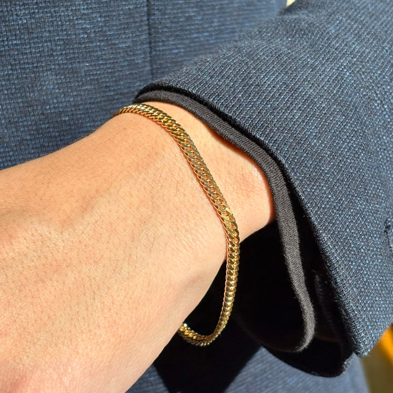 腕元に心地よい重みと存在感を感じられる喜平ブレスレット。