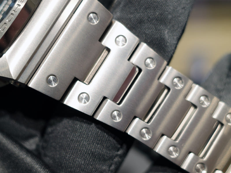 ブレスレットの駒には、純チタンの約3倍の硬度を持つDAT55Gを採用。