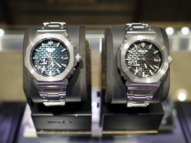 MR-Gの圧倒的な仕上げの美しさはもちろん、G-SHOCKが持つタフネスの思想やデザインの多様性まで、実物を通して“体験”できる空間になっています。