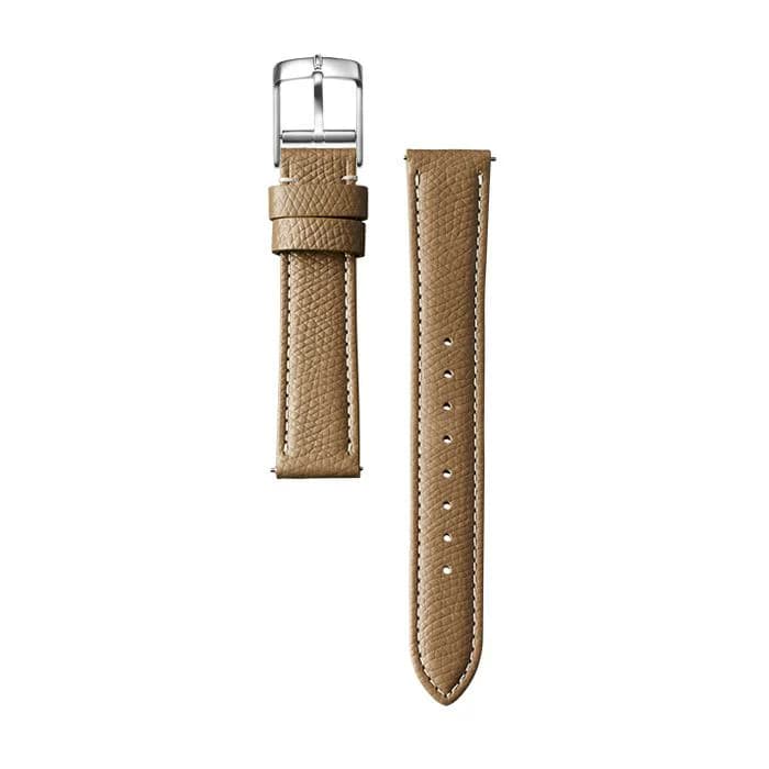 日本を代表する革素材「栃木レザー」を使用したストラップは、しなやかな質感と美しい経年変化が魅力です。使い込むほど手元に馴染み、時間とともに表情を深めていきます。ストラップは簡単に付け替えができるため、何本か揃えて、その日の装いや気分に合わせて使い分ける楽しみもあります。