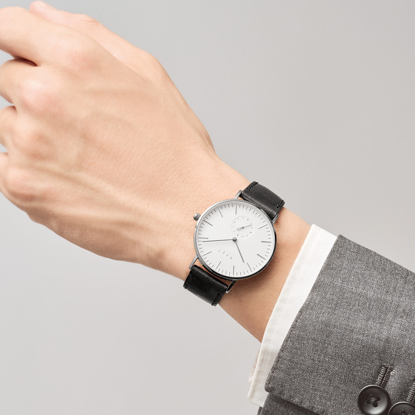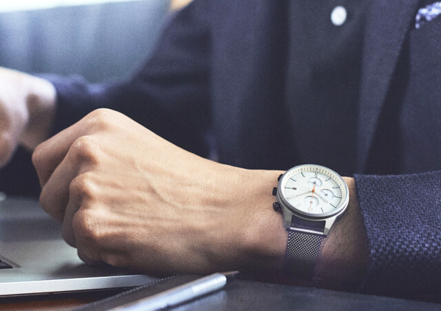 薄型でシンプル、ミニマルなデザインは、スーツにも休日の服装にも自然に馴染みます。