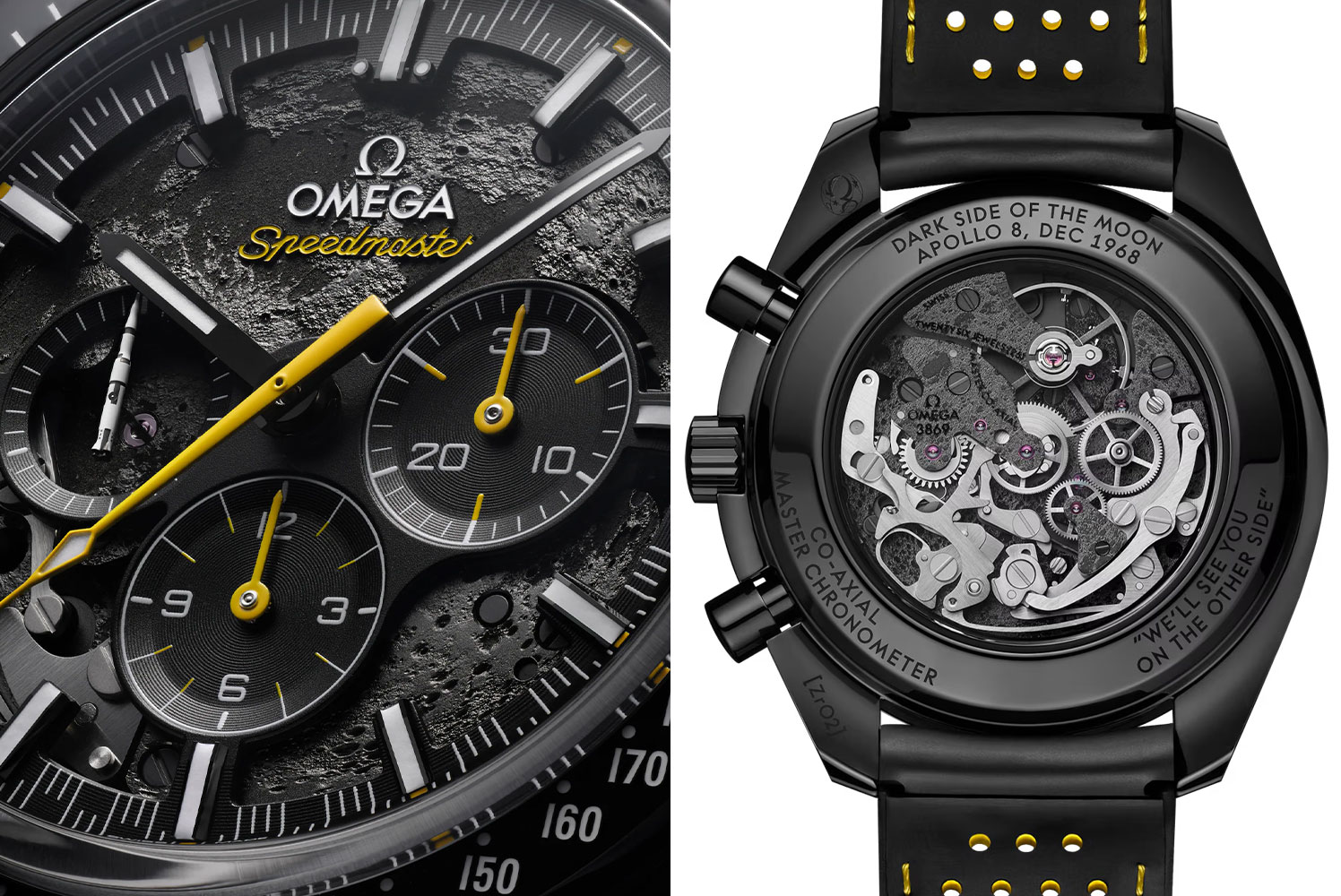 同じく月の様子をイメージしたモデルにブラックを基調としたアポロ8号モデルがあります。これらのグレーとブラックのカラーは、アポロ計画にて人類初の月周回飛行に成功したうちの1人であるジム・ラヴェル氏の言葉に由来しています。その言葉はそれぞれの裏側にも刻印されています。