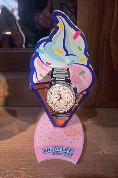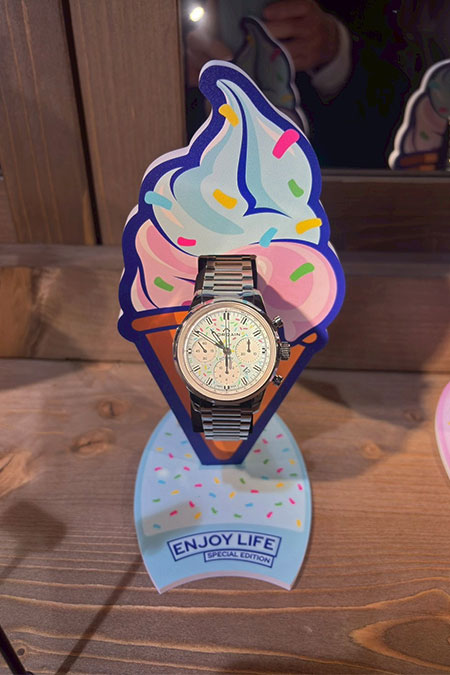 カラフルなスプリンクルは、暗闇で光るようになっていたり、週に一度だけ日付窓にアイスクリームのモチーフが現れるなど、ワクワクするような遊び心が盛り込まれています。