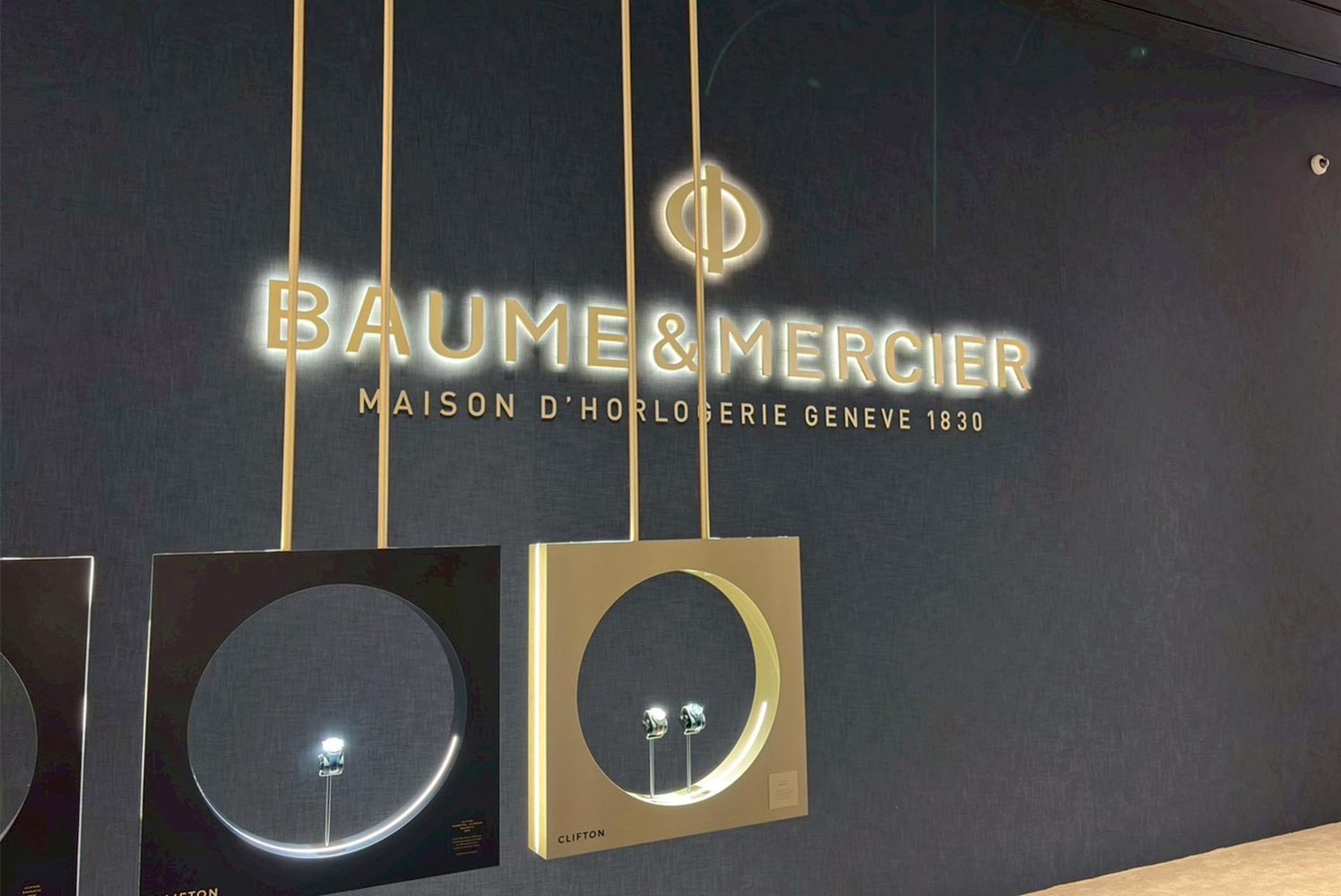 ボーム&メルシエと共に歩んできたコレクションたちのケースを象ったオブジェに、それぞれのモデルの新作が展示されており、一目分かりやすいセッティングが印象的でした。
