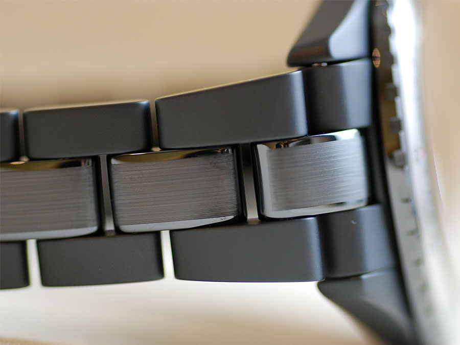 さらに中央のリンクは特に注目すべき点で、各セラミックリンク1つ1つにポリッシュ仕上げとヘアライン仕上げが組み合わされており、非常に繊細で高度な作業が必要とされます。