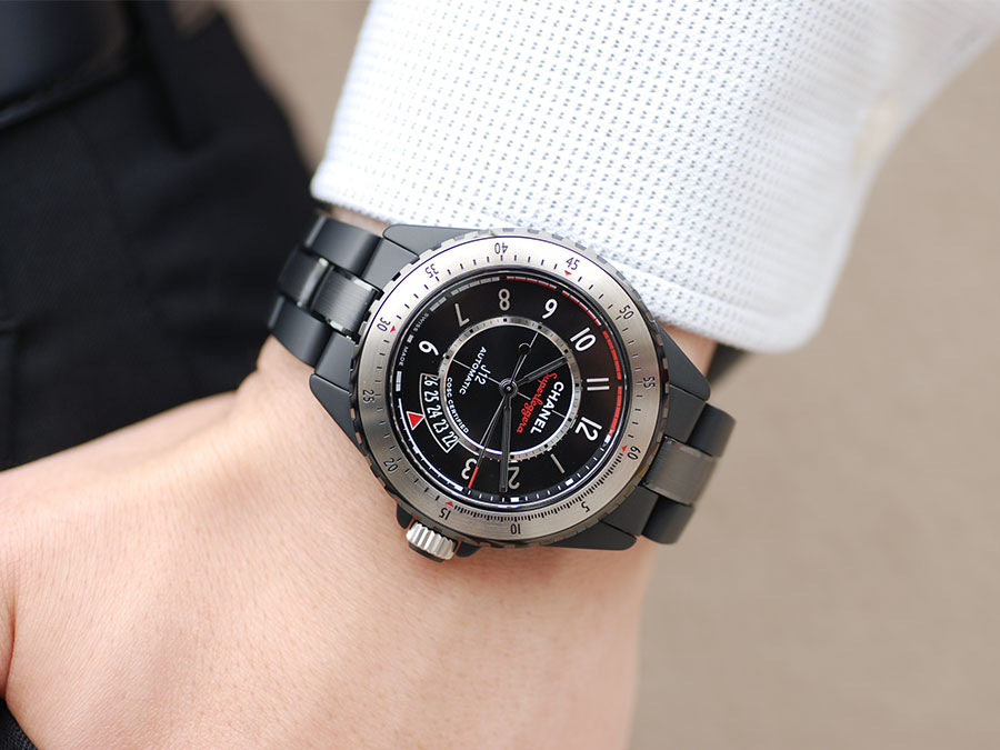 J12の中でも存在感のあるサイズで、腕に乗せた瞬間に感じるのはしっかりとした重厚感。