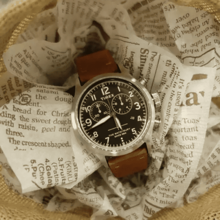 タイメックスおなじみの、リューズをプッシュすると光る「インディグロナイトライト」搭載ですので、夜の使用もばっちり!