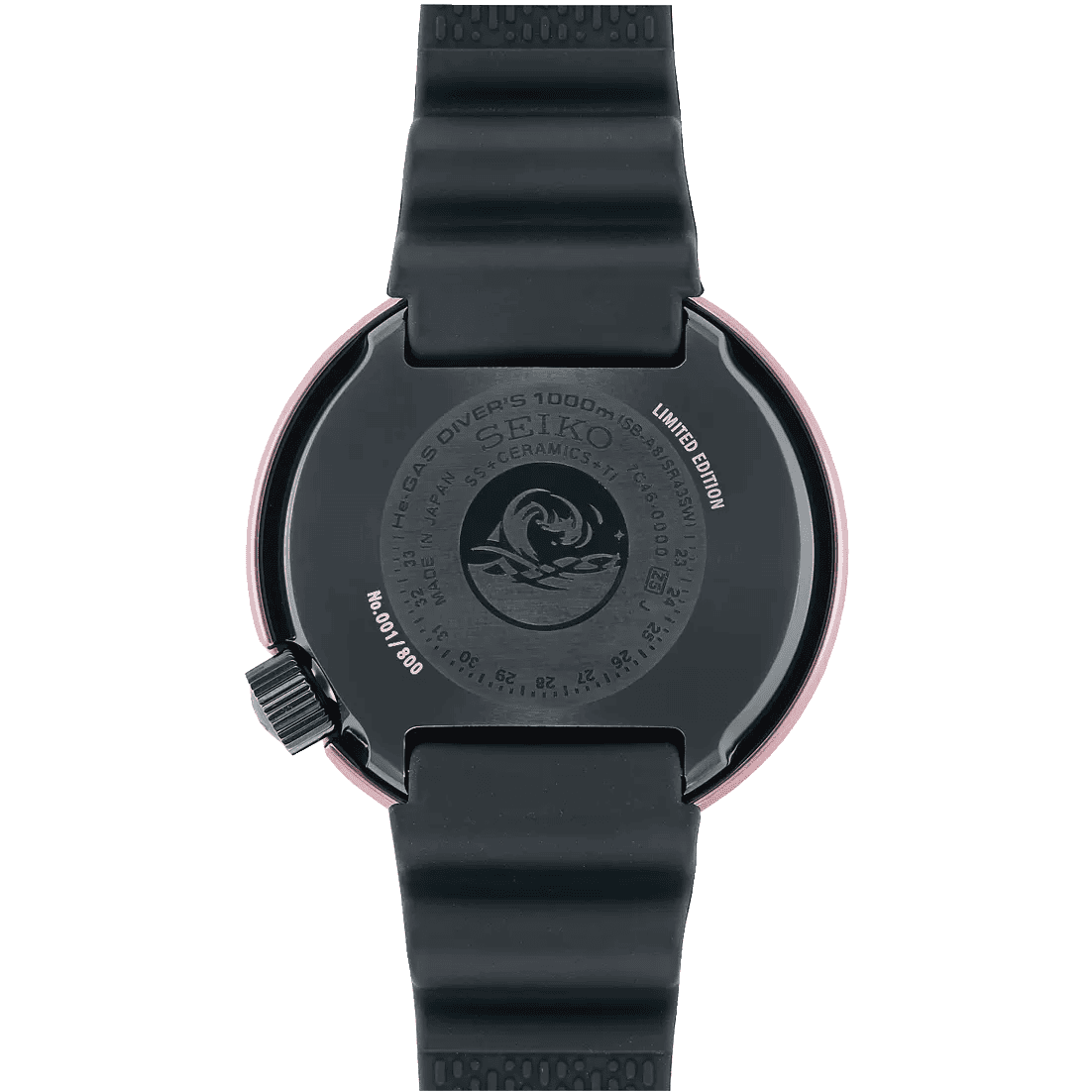 セイコー マリンマスター プロフェッショナルのアイコンであるセラミック製外胴ケースを超硬合金「サーメット」に変更、薄紫色に輝く幻想的なサンセットビーチを連想させる、「ヴァイオレットゴールド色」に仕上げました。