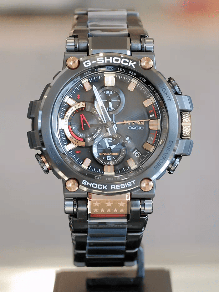 ブラック×レッドのG-SHOCKカラーに、ゴールドカラーがアクセントで入り、G-SHOCKのアイデンティティと歴史を感じる作りになっています。
