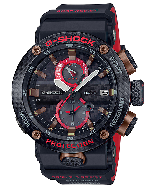 先月発売されたばかりの【カーボン G-SHOCK】の限定カラー。バーゼルワールド2019で発表され、世界的にも注目度の高いモデルです。文字盤にもカーボンを採用しています。数量限定。