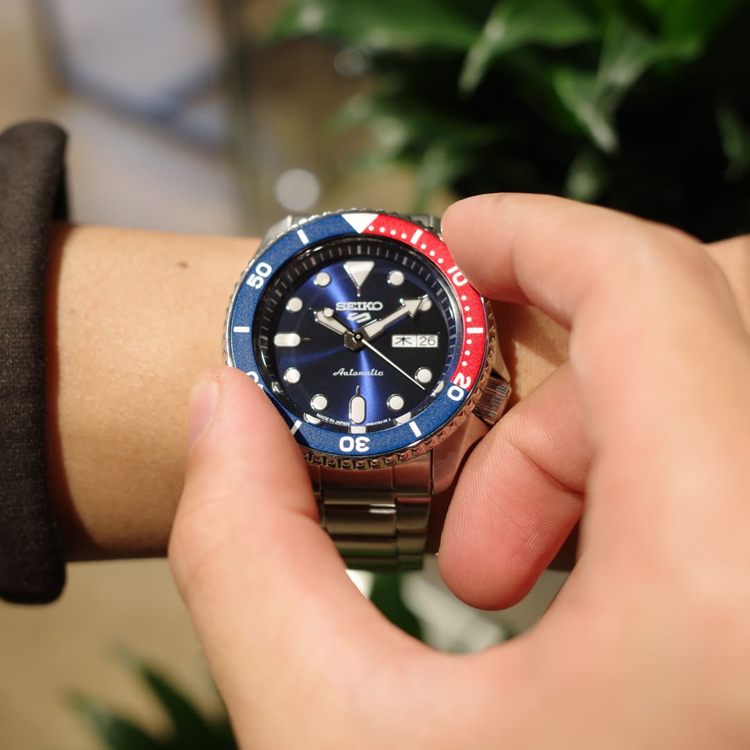 世界で人気の自動巻き時計SEIKO5スポーツにGMTモデルが追加。新開発のGMTムーブメントを搭載し、艶やかなハードレックスガラスをベゼルに採用。