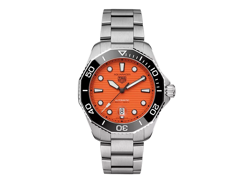 オレンジ、白、黒のバランスの取れた配色でカジュアルにお使い頂けます。さらに、300m防水を有していますのでどのような状況においても信頼できるモデルです。