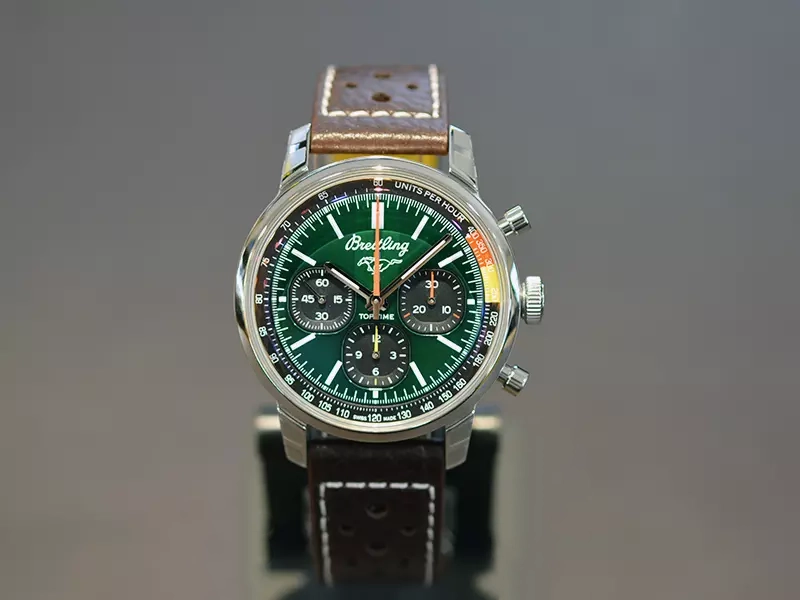 トップタイムは1960年代のモータースポーツの大胆さを感じさせる型破りなデザインで人気を博しました。当時のスポーツカーの代名詞でもあるマスタングは今も名を色褪せません。このレトロな雰囲気もブライトリングが、モータースポーツ界とともには知り抜いてきた証でもあります。