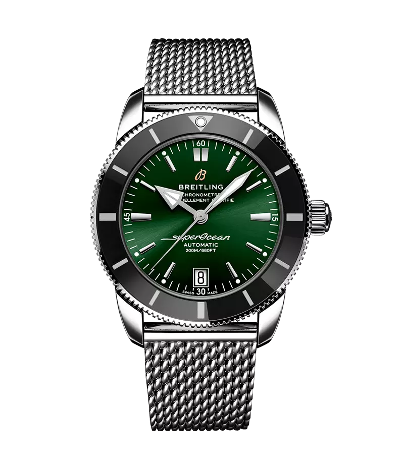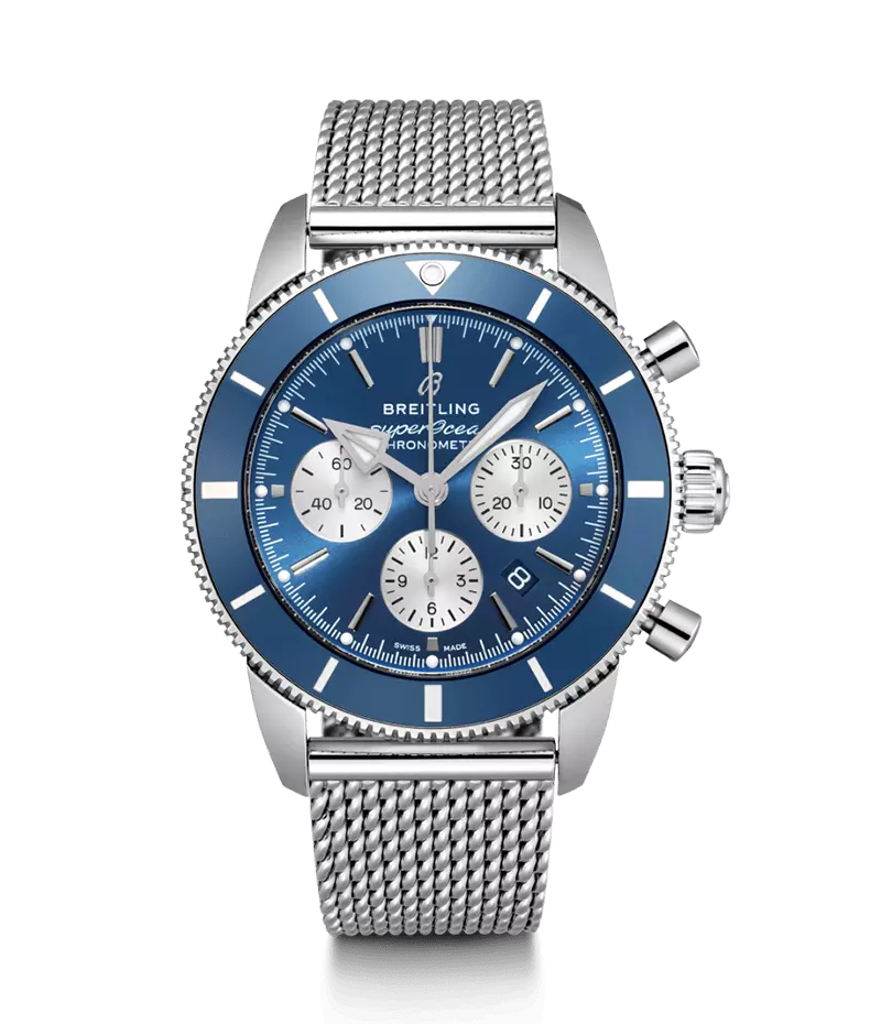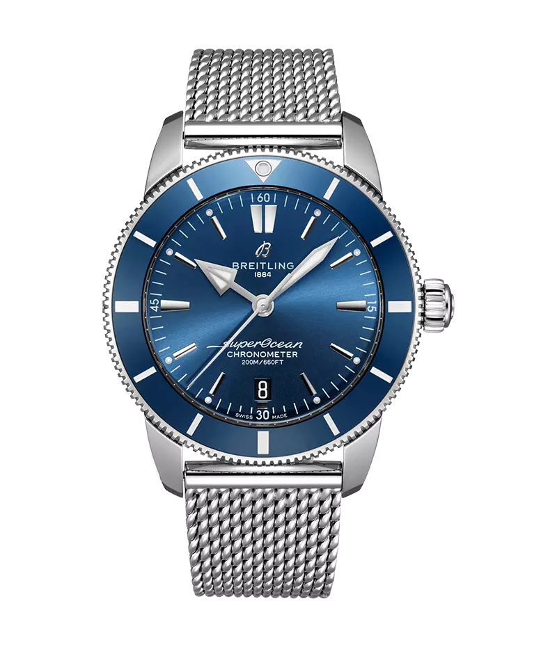アップデートされ、アップグレードされたスーパーオーシャン ヘリテージは、60年以上にわたるブライトリングの素晴らしいダイバーズウォッチの遺産を祝すラインです。バイタリティーあふれるデザインにより、最新技術とタイムレスな美しさがブレンドされました。
