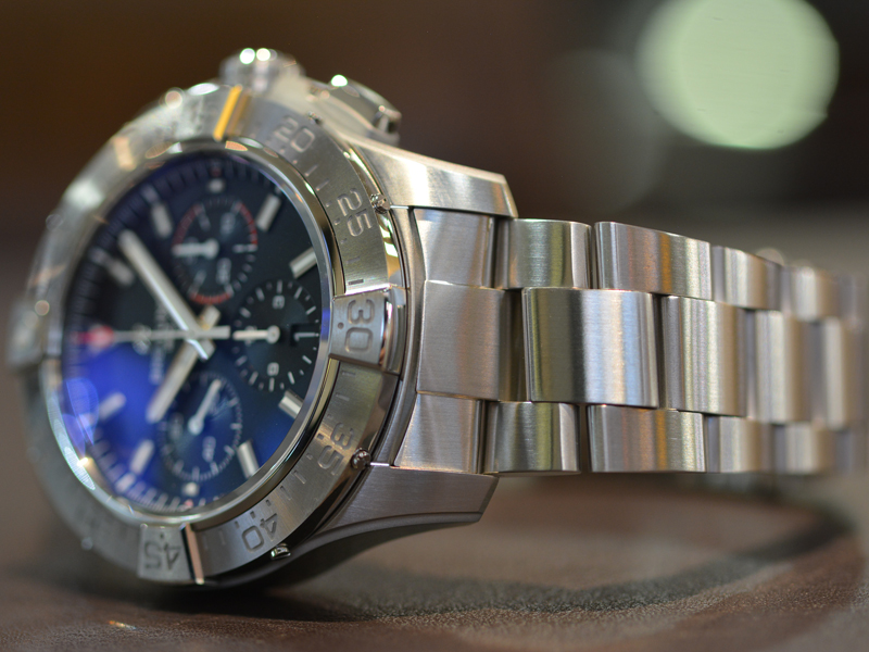 アベンジャーシリーズで、遂に自社製キャリバーB01を搭載したこちらのモデル。これにより、インダイヤルの配置も縦方向から横方向へと移り変わりました。