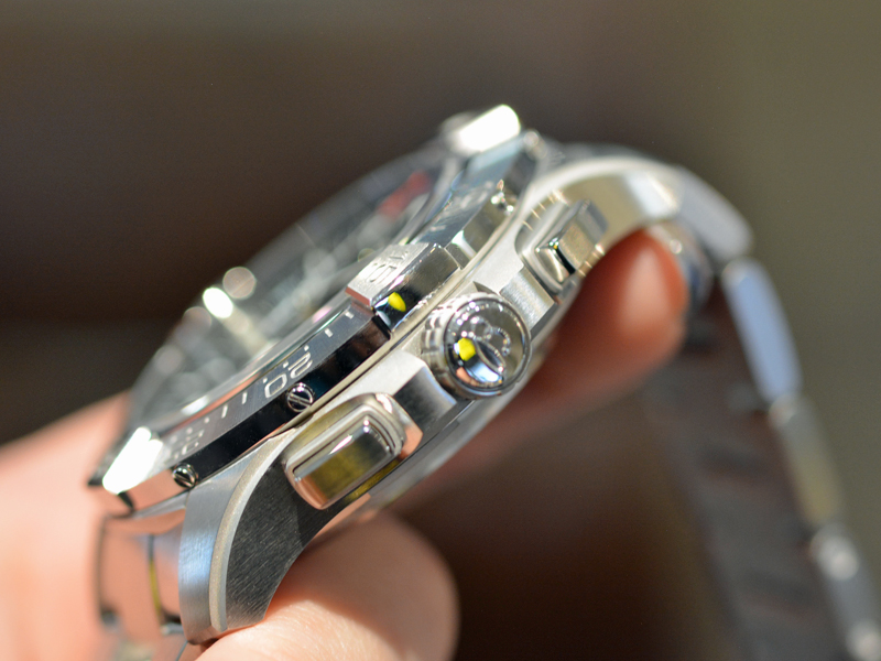 また、スムーズな計時操作のためにデザインされた新しい角型プッシャーによって側面の凹凸が少なくなり、あらゆる場面での装着がしやすくなったのではないでしょうか。