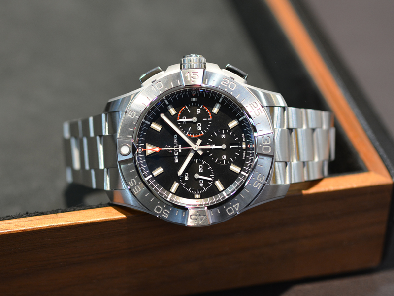 ダイナミックな44㎜ケースと一目で魅了する無骨なベゼルが、ブライトリングらしさをより引き立てています。