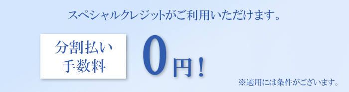 分割払い手数料が0円のスペシャルクレジットをご利用いただけます。詳細は店頭スタッフまでお気軽にお問い合わせください。