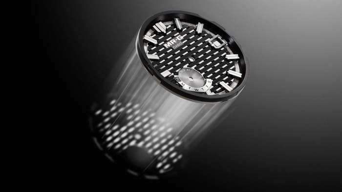 通常は半透明のディスクを文字盤に用いますが、山形の超精密加工技術を駆使し、微細な穴から光を通す構造となっています。これにより不透明な素材の使用が可能になり、金属調で立体感のある力強い造形が実現できました。