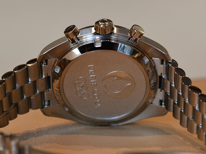 また、クロノスコープの古き良きスネイルダイヤルはオメガがオリンピックに携わってきた歴史も感じさせます。それでいて、この品格が漂う雰囲気はやはりパリの優雅な息吹が吹き込まれているからでしょう。ケースバックの聖火の刻印がシルバーがなのも、時計全体の統一感をグッと高めています。