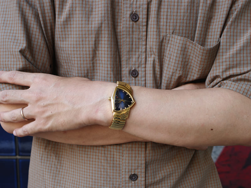 そんな個性のある時計を気に入り、映画ではもちろんプライベートでも愛用したのが、エルヴィス・プレスリーです。映画俳優でもあり、ロックスターでもある彼が愛用したのがベンチュラでした。