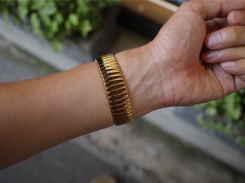 裏側を見ると一体感のあるブレスデザインをしています。 着用感が良いのはもちろんですが、着け外しもしやすく使い勝手の良さもあります。