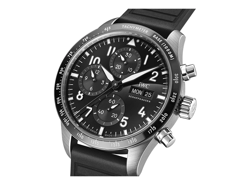 「パイロット・ウォッチ・パフォーマンス・クロノグラフ 41“AMG”」は、その素性を空の時計としながらも、自動車という土俵で究極を追い求めるパートナーにオマージュを捧げるクロノグラフです。