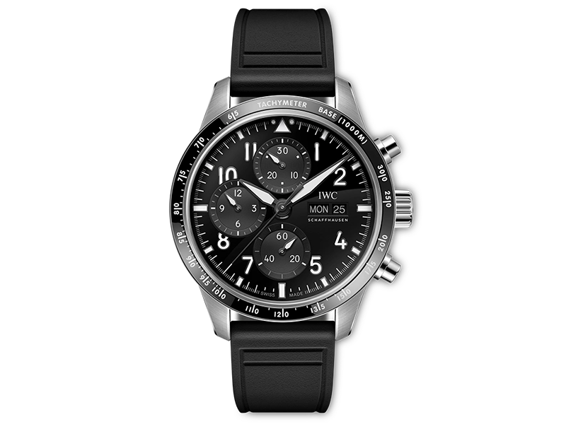 黒をベースとした配色は、非常に引き締まった印象を受けます。いかにも過ぎず、クラシックでもない程よいスポーティスタイルは、強いて言うならスタンダードのパイロット・ウォッチ・クロノグラフとポルトギーゼ クロノグラフの中間的存在といったところでしょうか。