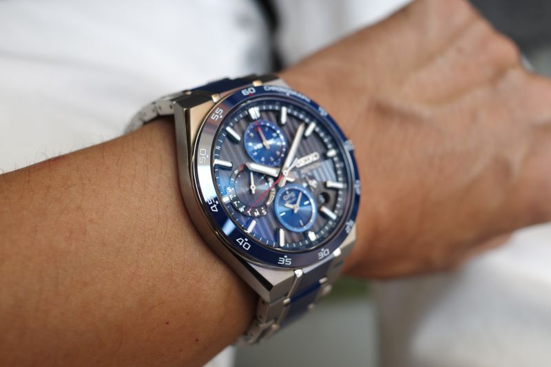 充電効率が上がったことにより、文字盤のクオリティが向上しています。また、GPSアンテナの感度が上がり小型化が進んだことによって、縦3つ目のクロノグラフが実現しています。