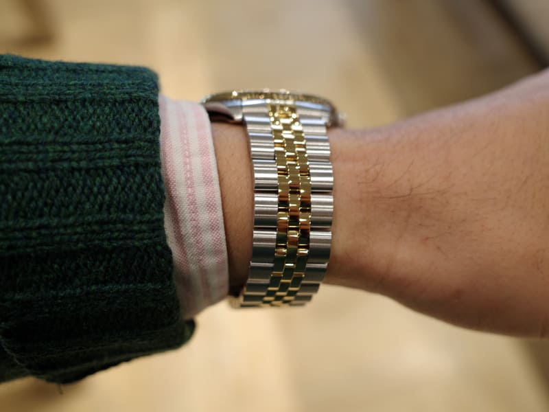5列のブレスレットは細やかで、腕にしっかりと回ってくれフィット感もあります。ケースが薄型の分しっかりと乗ってくれるような印象です。