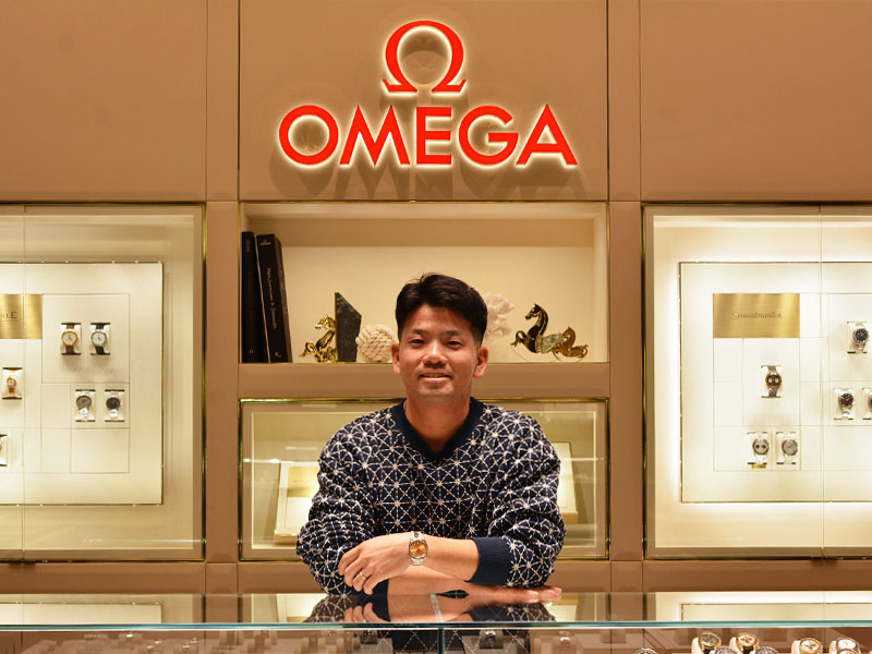 東京よりご旅行で松山へ。当店の前を通りがかり、たまたまご来店いただいたというI様。既に、オメガ「シーマスターアクアテラ 150M」をご愛用されていましたが、今回はご自身が応援されているジャイアンツのチームカラーでもある鮮やかなオレンジをお気に召していただき、同ブランド『アクアテラ シェード』をご成約となりました。