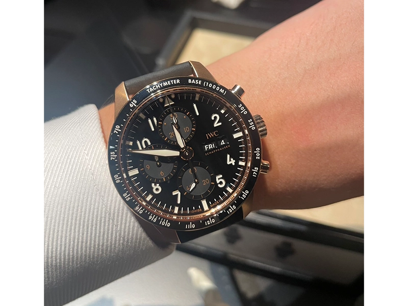 ラグジュアリーな18Kレッドゴール製ケース、「パイロット・ウォッチ・パフォーマンス・クロノグラフ 41」は、劇中でチームメイトのF1ドライバーが着用します。