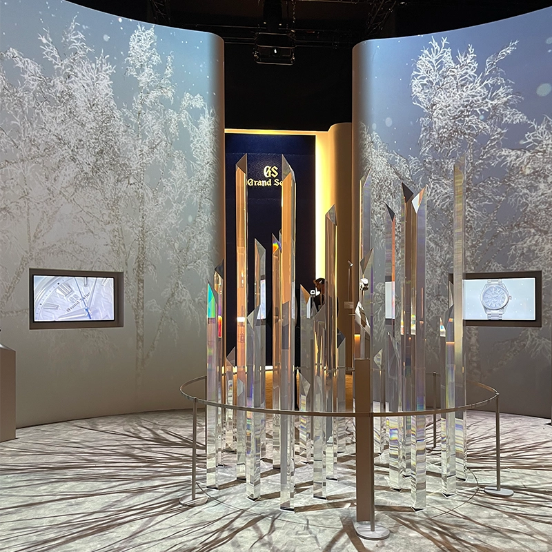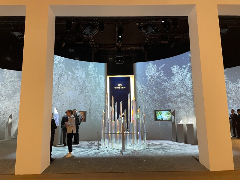 グランドセイコーのブースは入り口から幻想的な空間が広がります。また、この場にあるだけで日本人としての誇りを感じますし、遠い異国の地にあって安心感を覚えてしまいます。