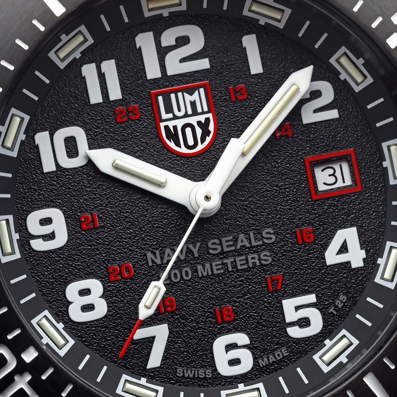 ネイビーシールズが任務に注ぐ熱意と集中力を表現するとともに、ルミノックスの“信頼される道具であること”へのこだわりが感じられるディテールです。